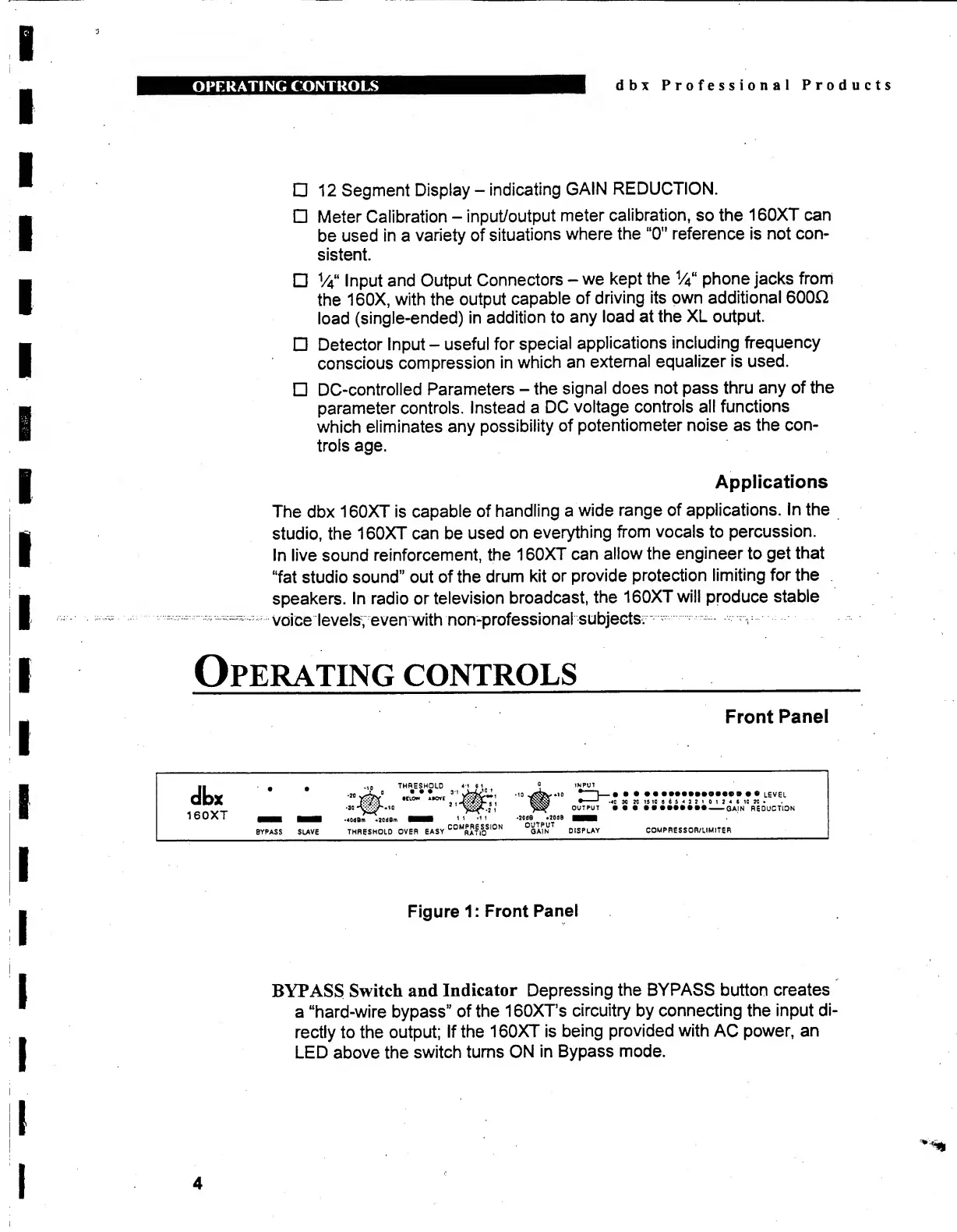 dbx 160X - 3.0 OPERATION; 3.1 OUTPUT CONTROL; 3.2 THRESHOLD CONTROL; 3.3 RATIO CONTROL