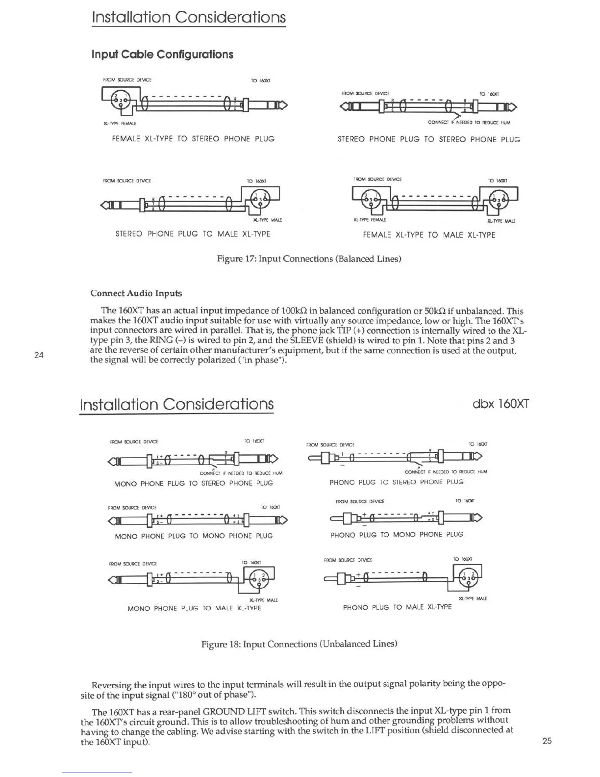 Figure 18: Input Connections (Unbalanced Lines)