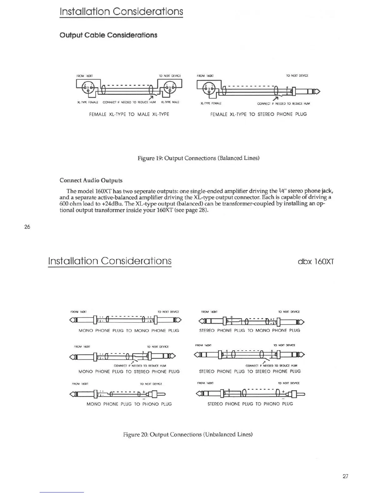 Figure 20: Output Connectio ns (Unbalanced Lines)