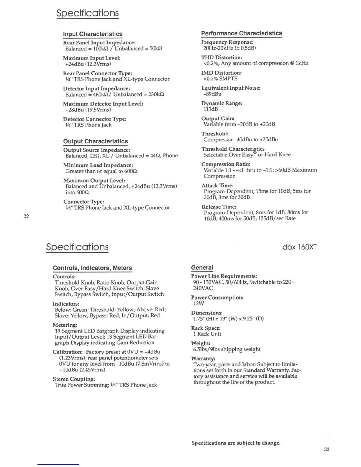 lOdB, 400ms for SOdB; 125dB/sec Rate