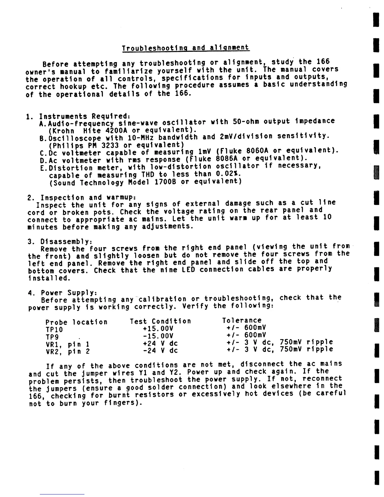 dbx 166 - Troubleshooting and Alignment; Instruments Required; Inspection and Warmup; Disassembly