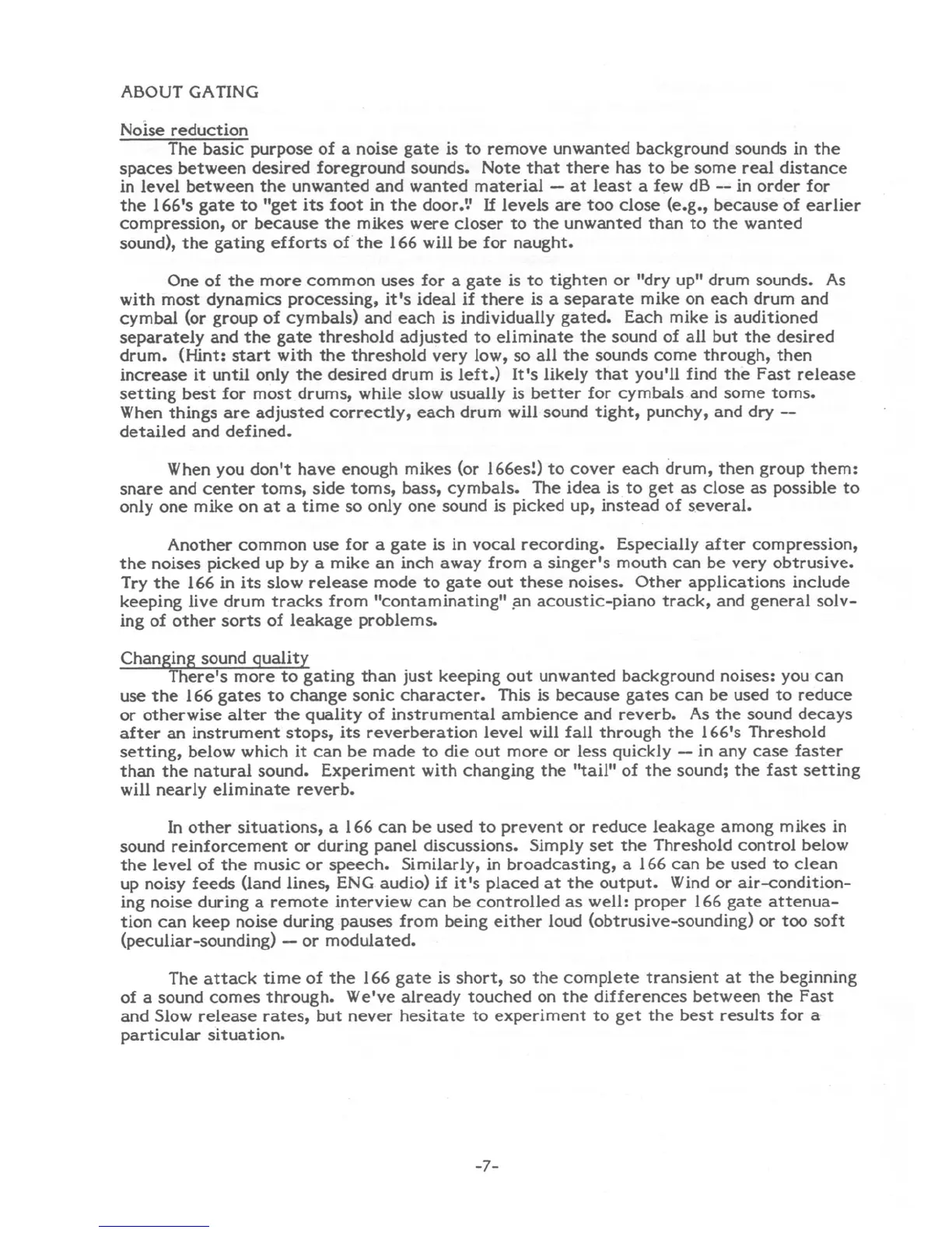 dbx 166 - About Gating; Noise Reduction with Gating; Altering Sound Quality with Gating
