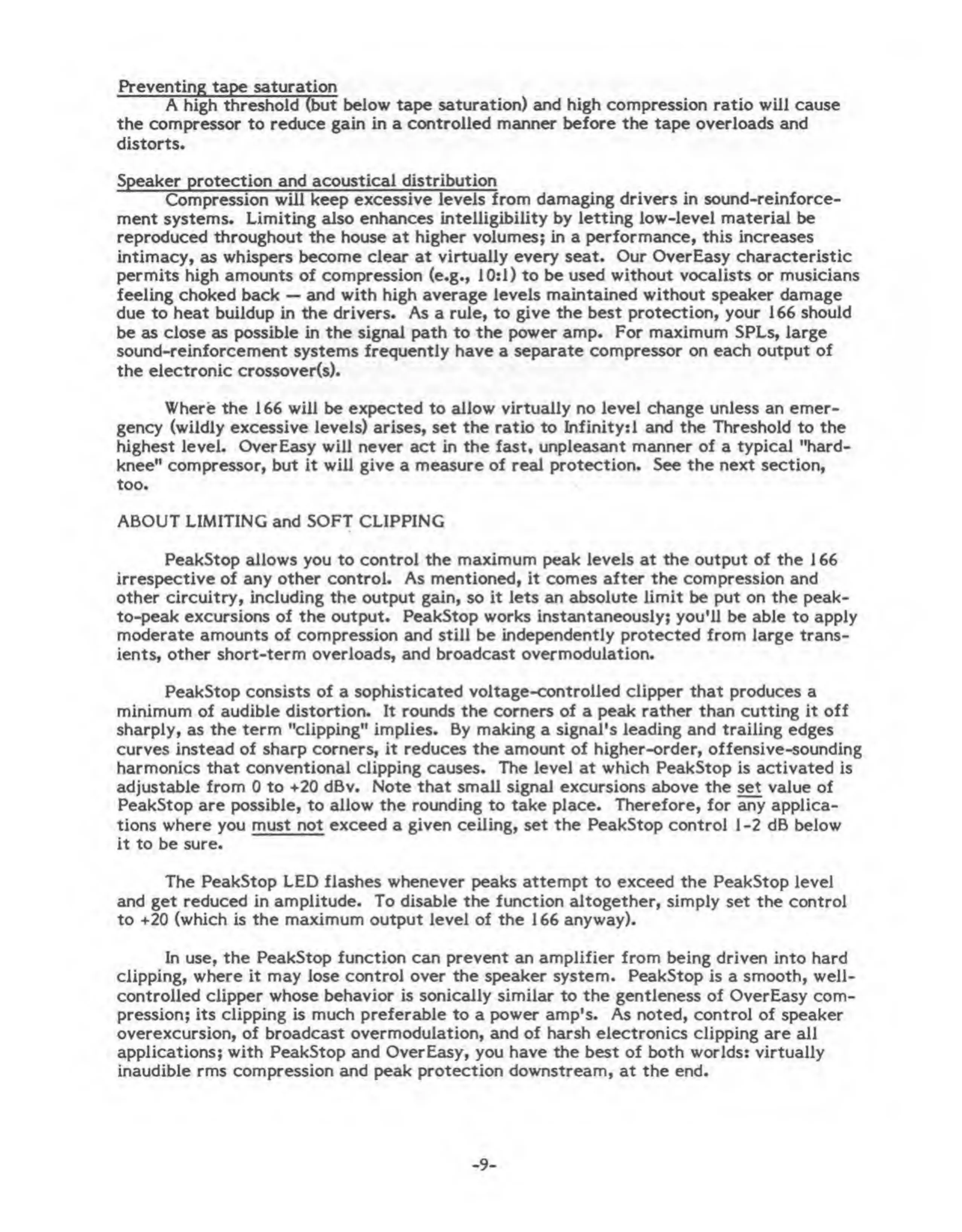 harmonics that conventional clipping causes. The level at which PeakStop is activated is