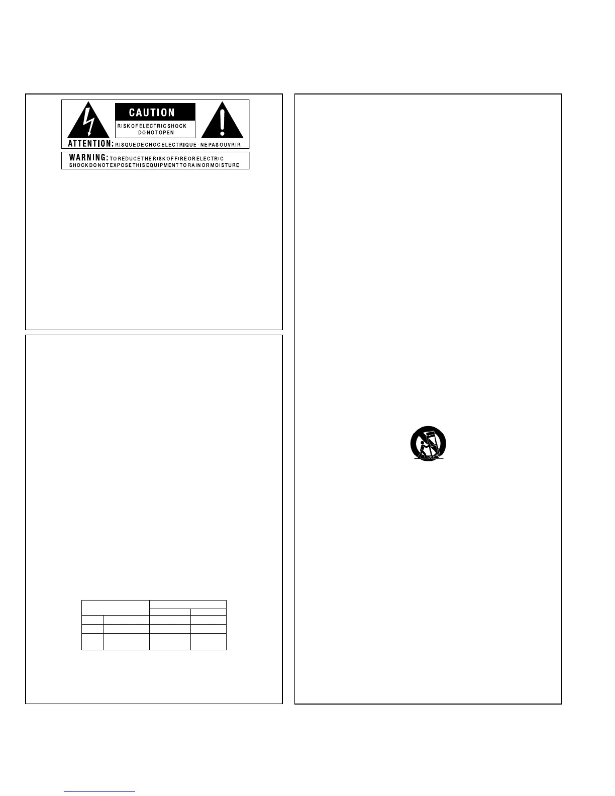 Use only with the cart stand, tripod bracket, or table specified by the manufac-