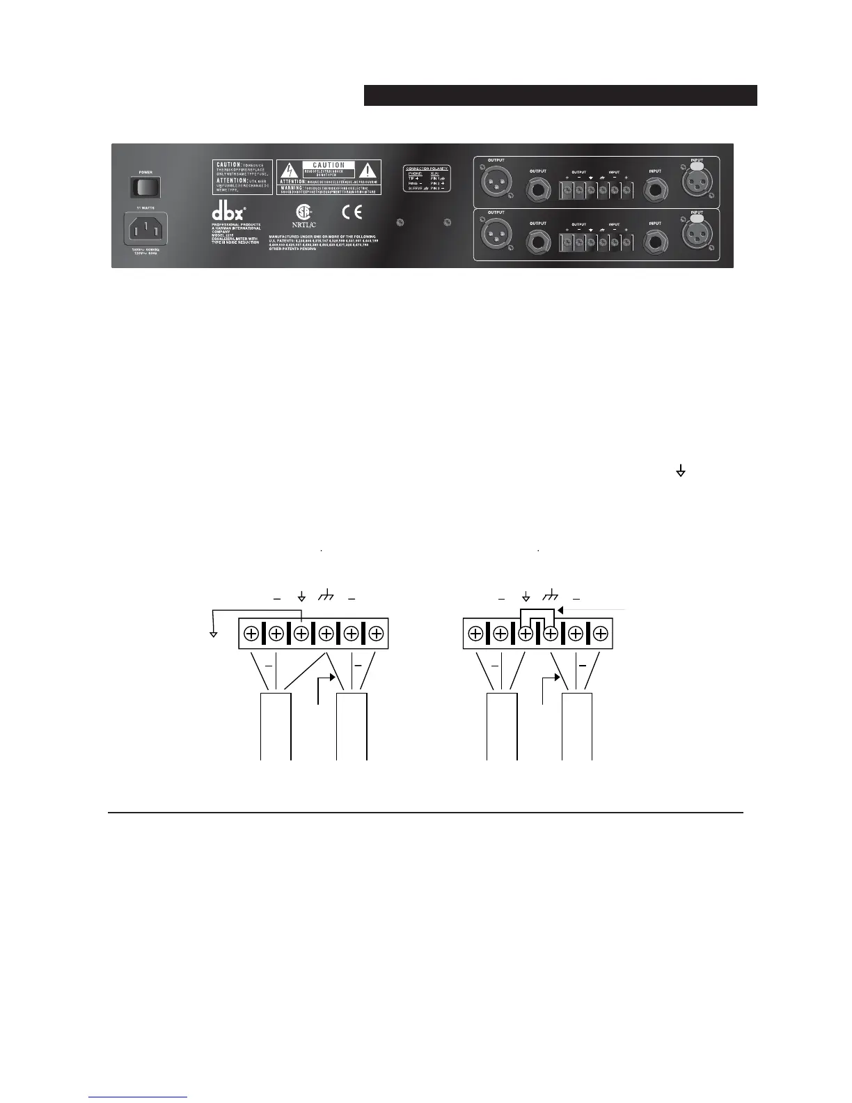 hum rejection with a balanced source, avoid common grounding at the equalizer’s inputs and outputs. Most bal-