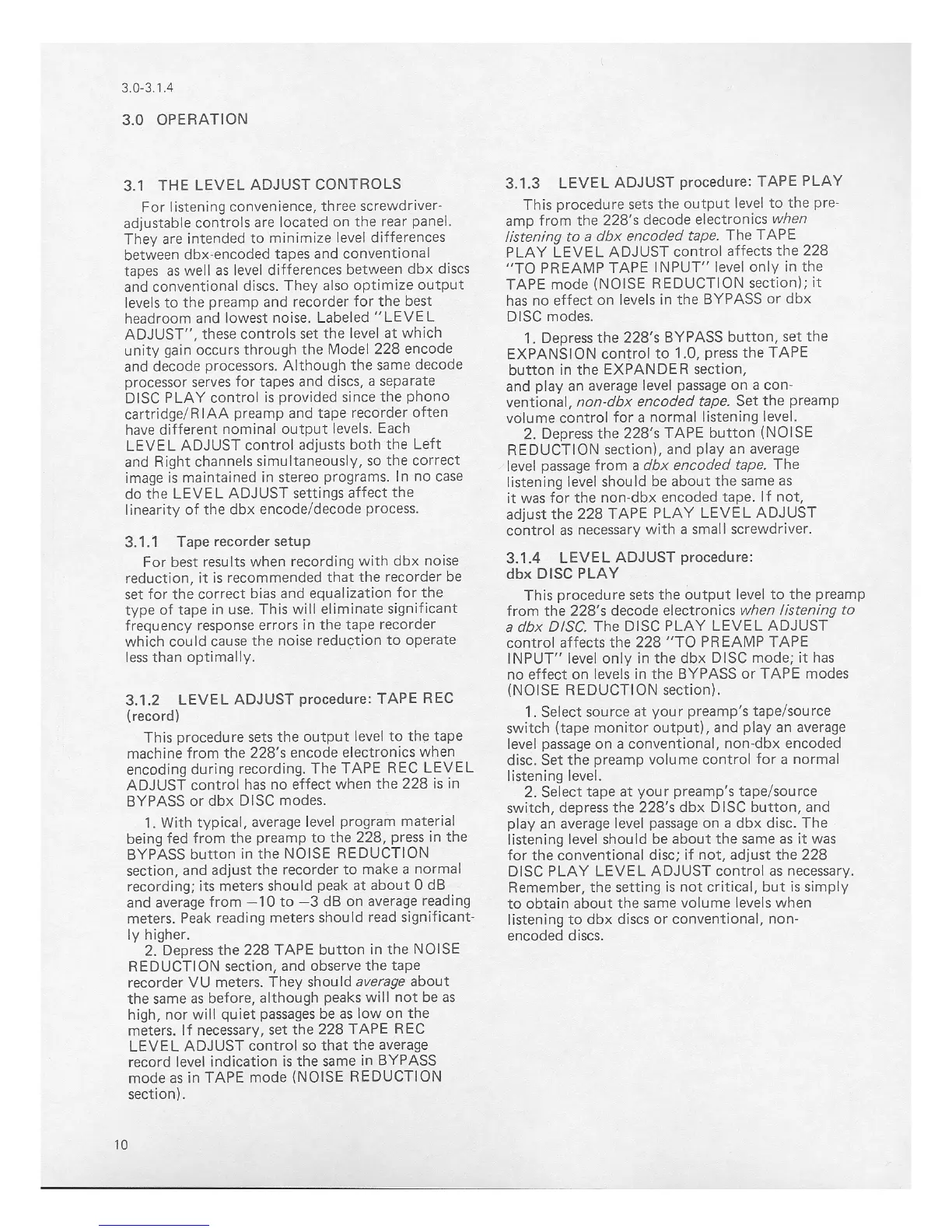 dbx 228 - Operation - Level Adjustments; Level Adjust Controls Overview; Tape Record Level Adjust; Tape Play Level Adjust