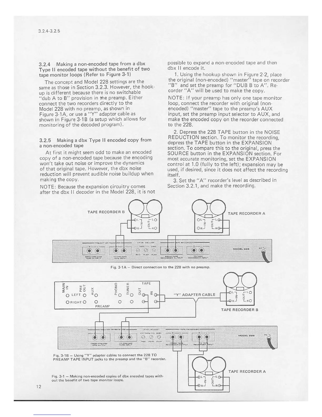 dbx 228 - Operation - Tape Conversion; Non-Encoded Tape from dbx Type II (No Monitor Loops); Making dbx Type II Copy from Non-Encoded Tape