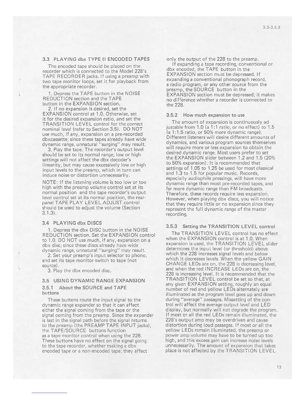 dbx 228 - Operation - Playing Tapes and Discs; Playing dbx Type II Encoded Tapes; Playing dbx Discs; Dynamic Range Expansion Basics