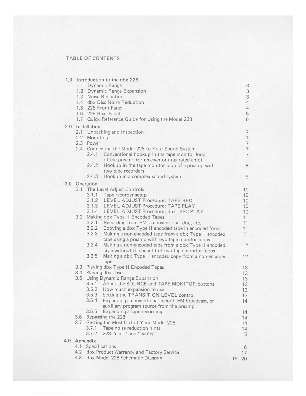 dbx 228 - Table of Contents
