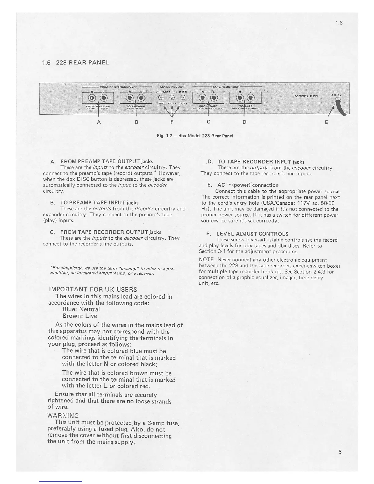 dbx 228 - Rear Panel Connections; Rear Panel Jacks and Power