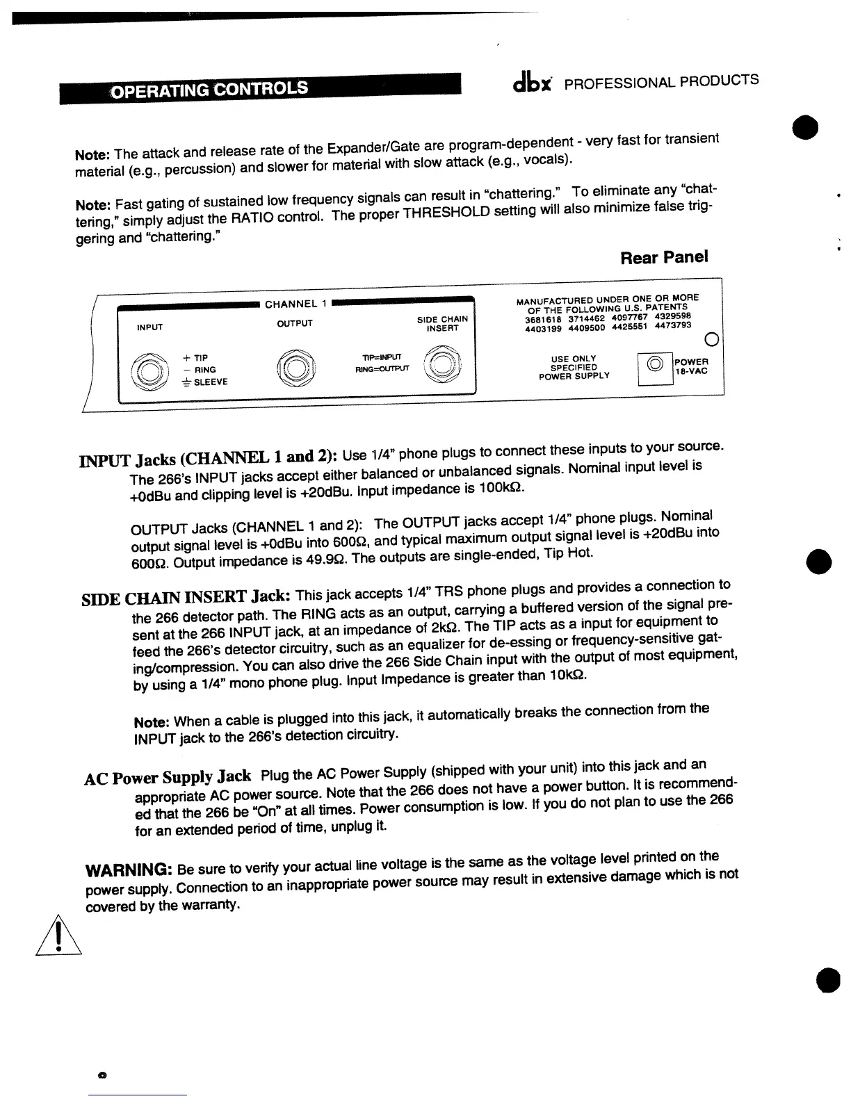 dbx 266 - Connections and Power