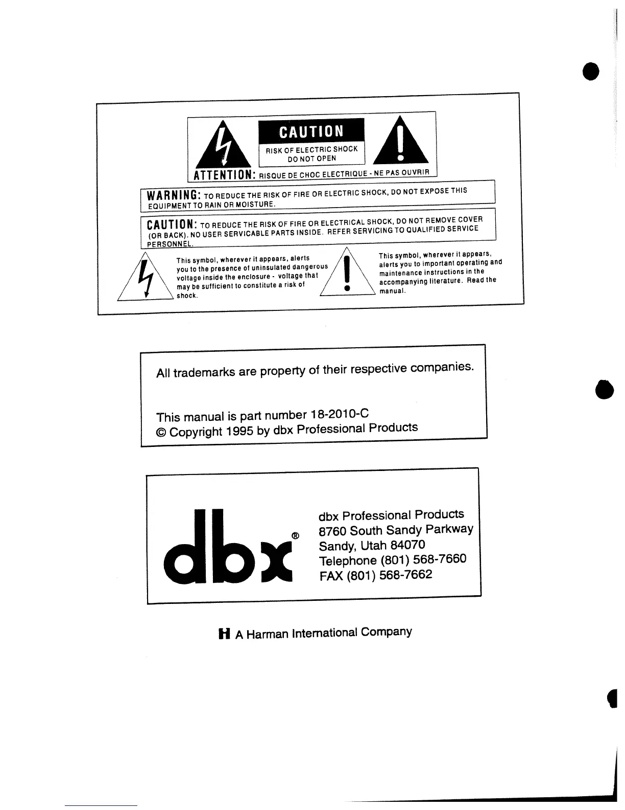 dbx 266 - Safety Warnings