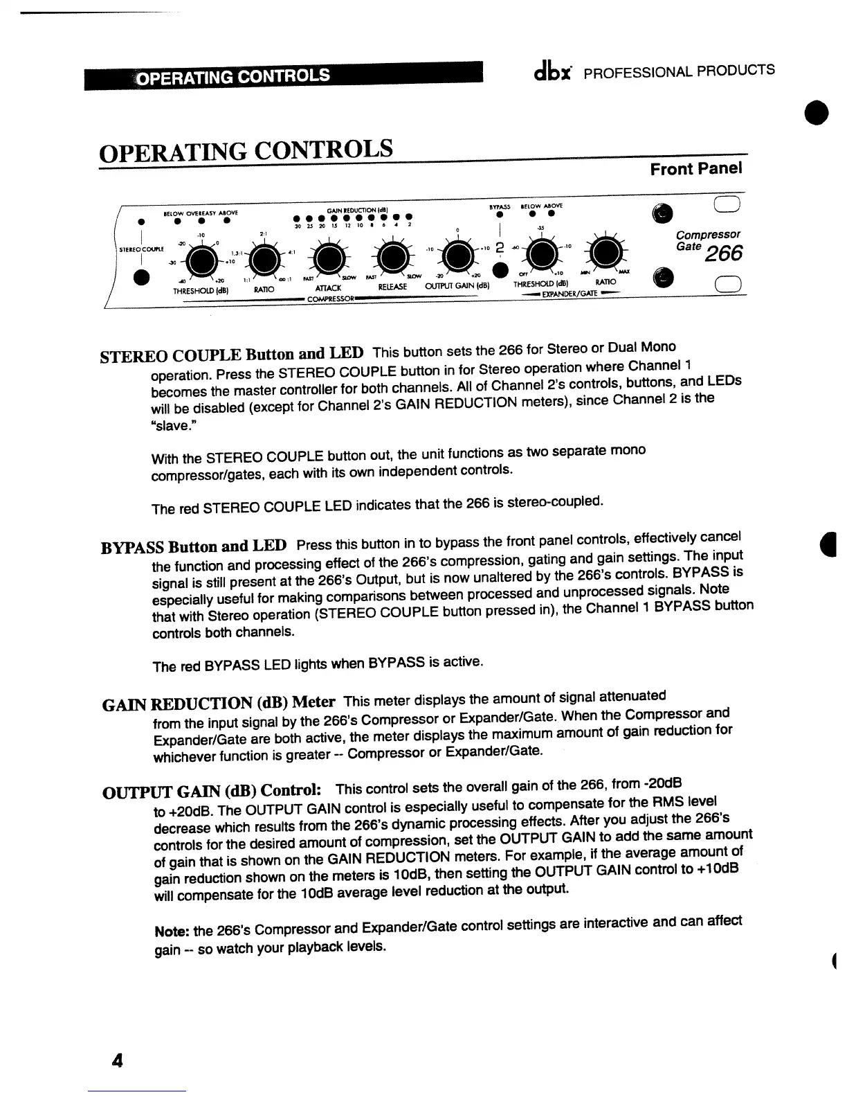 dbx 266 - OPERATING CONTROLS; Front Panel Controls