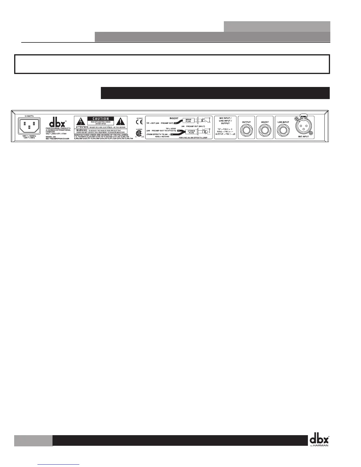 etc.) between the Mic Preamp Section and the Processing Section, insert a 1/4” TRS plug