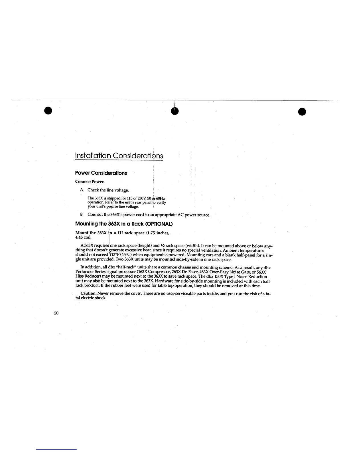 dbx 363X - Installation Considerations; Power and Rack Mounting Overview