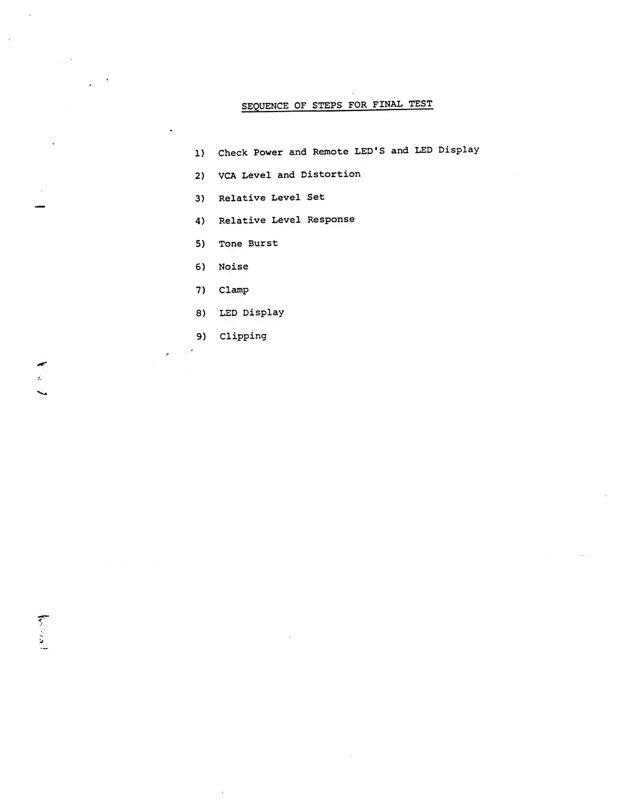 dbx 3BX - Sequence of Steps for Final Test; Check Power and Remote LEDS and LED Display; VCA Level and Distortion; Relative Level Set
