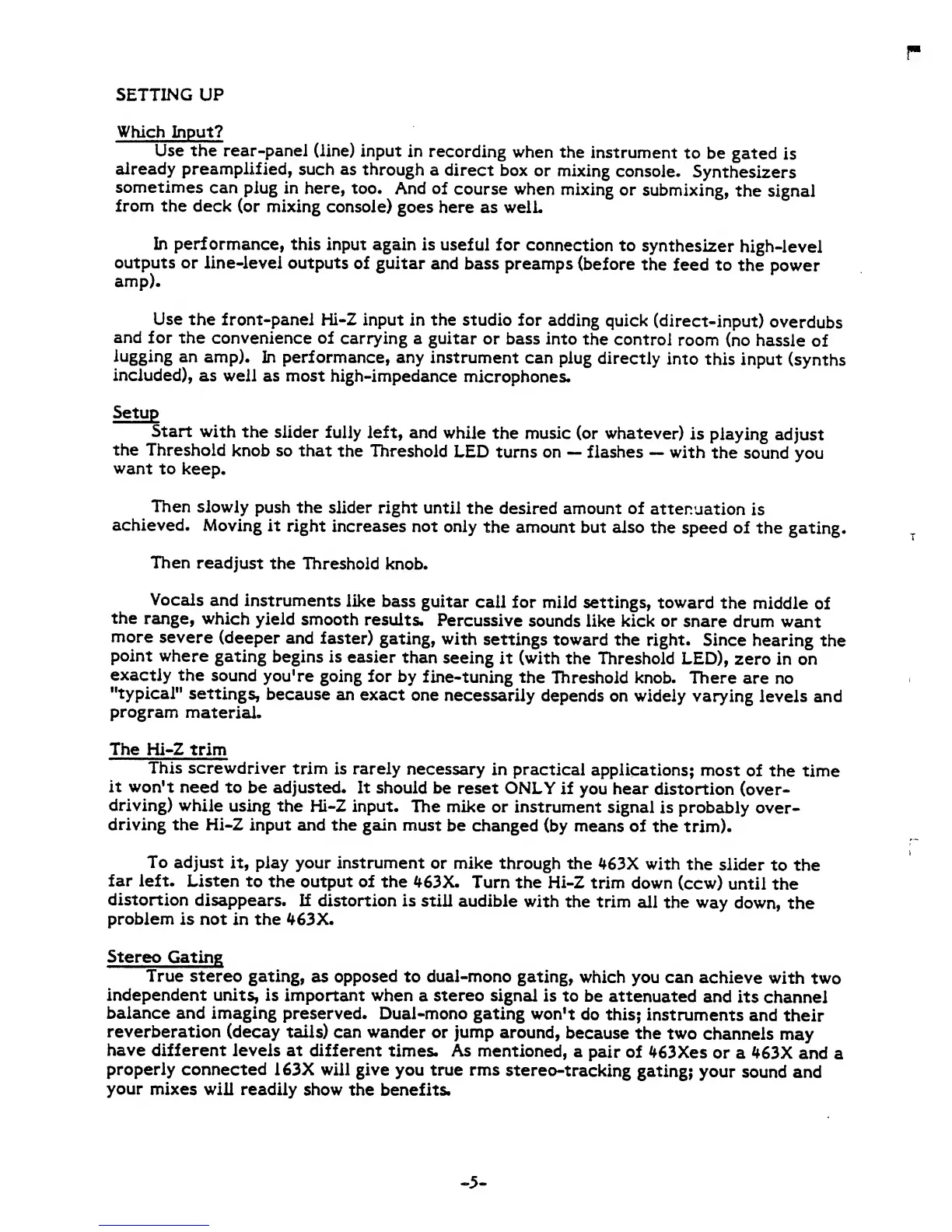 dbx 463X - Setting Up and Operation; Choosing the Correct Input; Operational Setup Steps; Hi-Z Gain Trim Adjustment