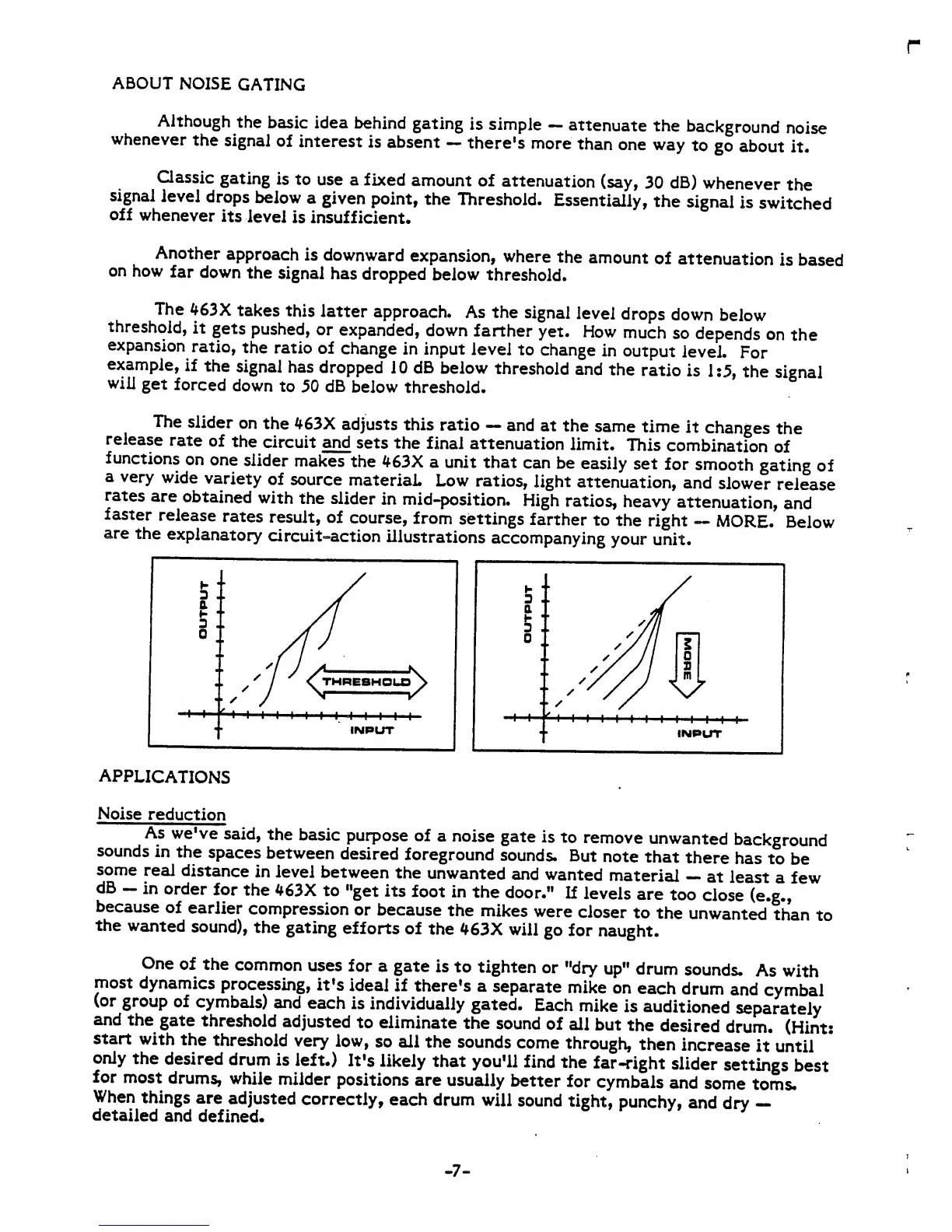 dbx 463X - Noise Gating Principles; Gating vs. Downward Expansion; Slider Control Functions