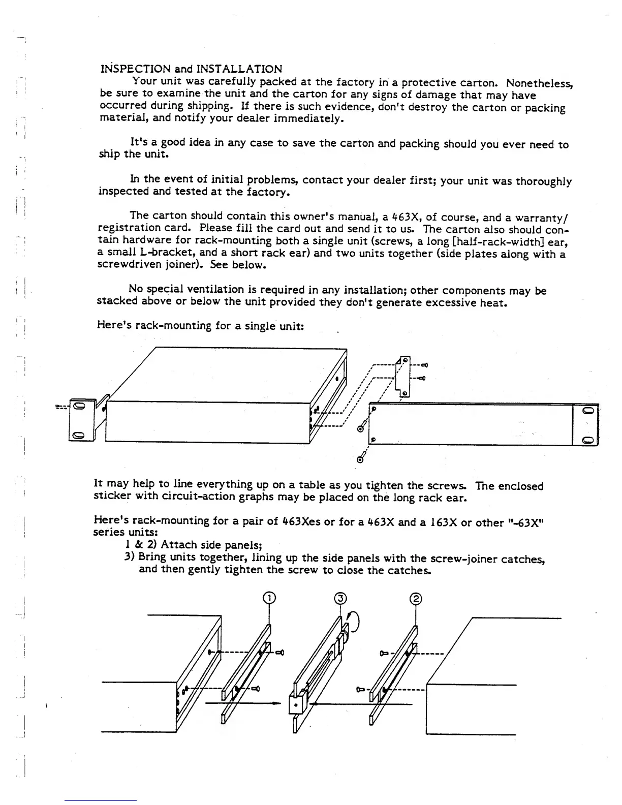 dbx 463X - Inspection and Installation Guide; Rack-Mounting Instructions