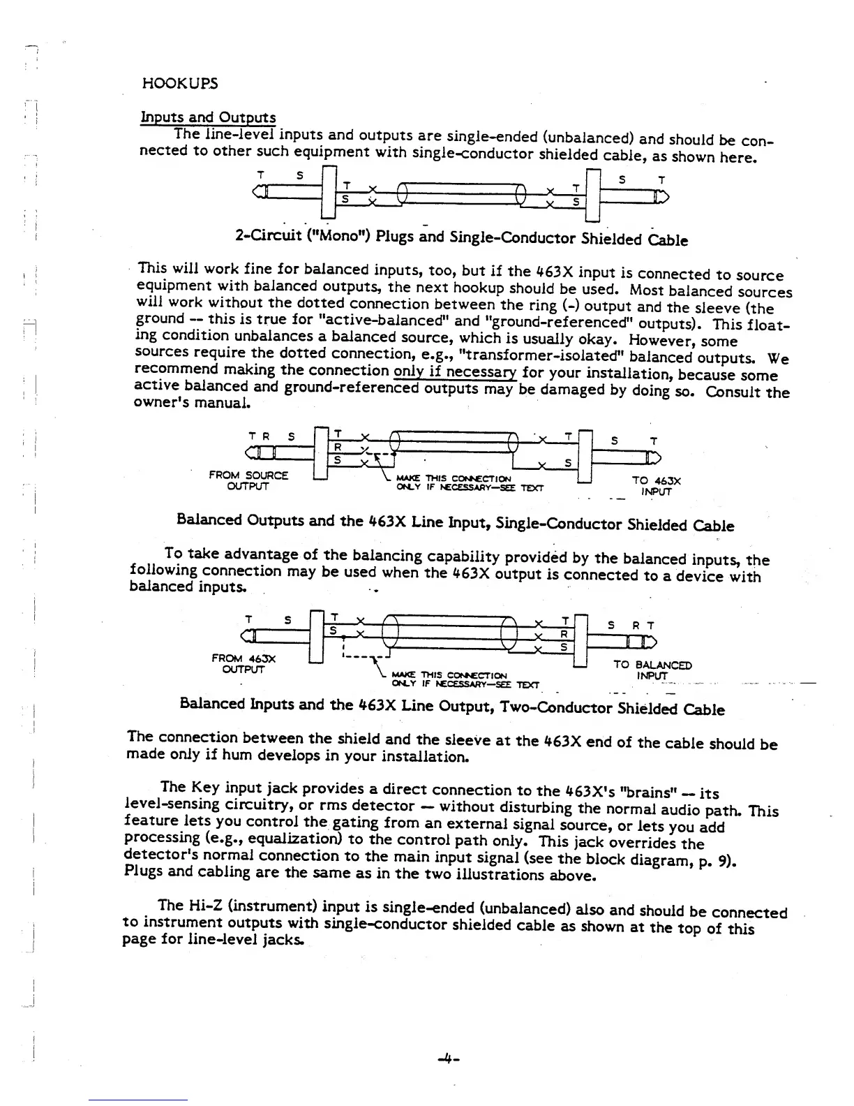 dbx 463X - Audio Connections and Hookups; Line-Level Input;Output; Balanced Input;Output Considerations; Key and Hi-Z Input Usage