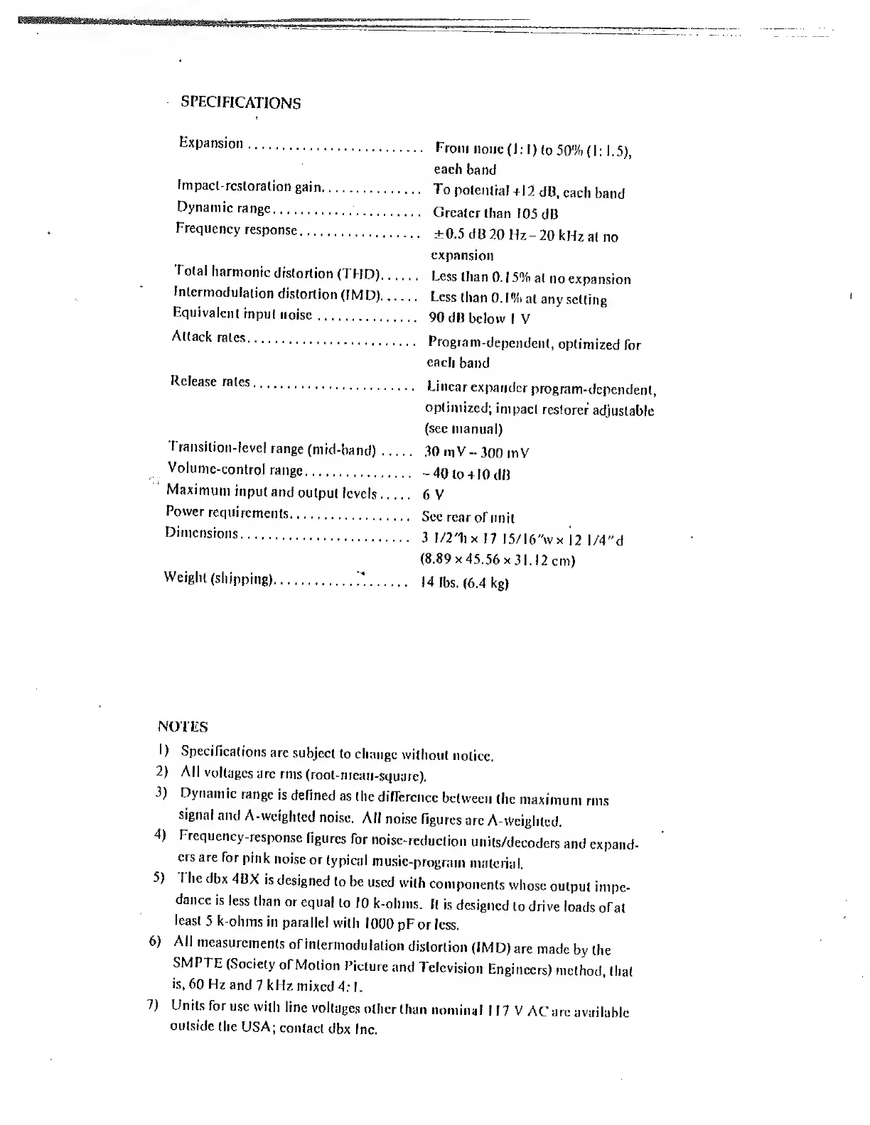 dbx 4BX - Specifications