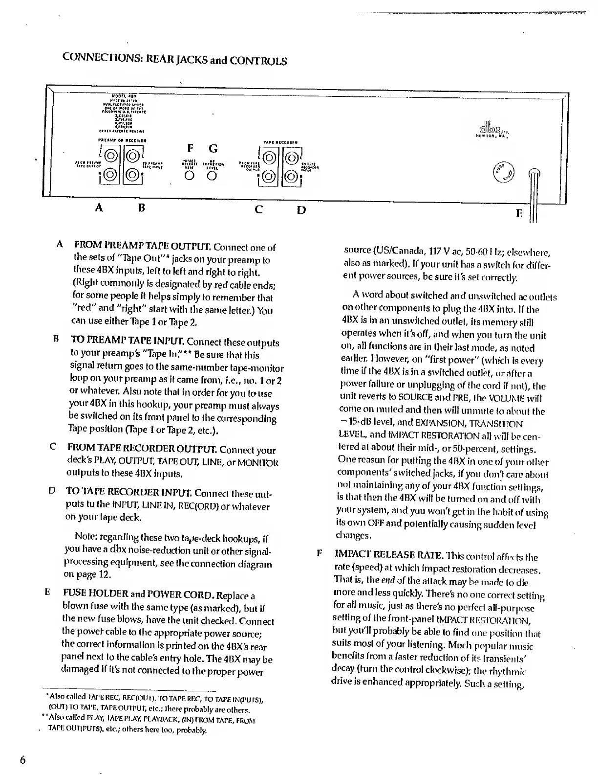 dbx 4BX - Rear Jacks and Connections; Preamp and Tape Recorder Hookups