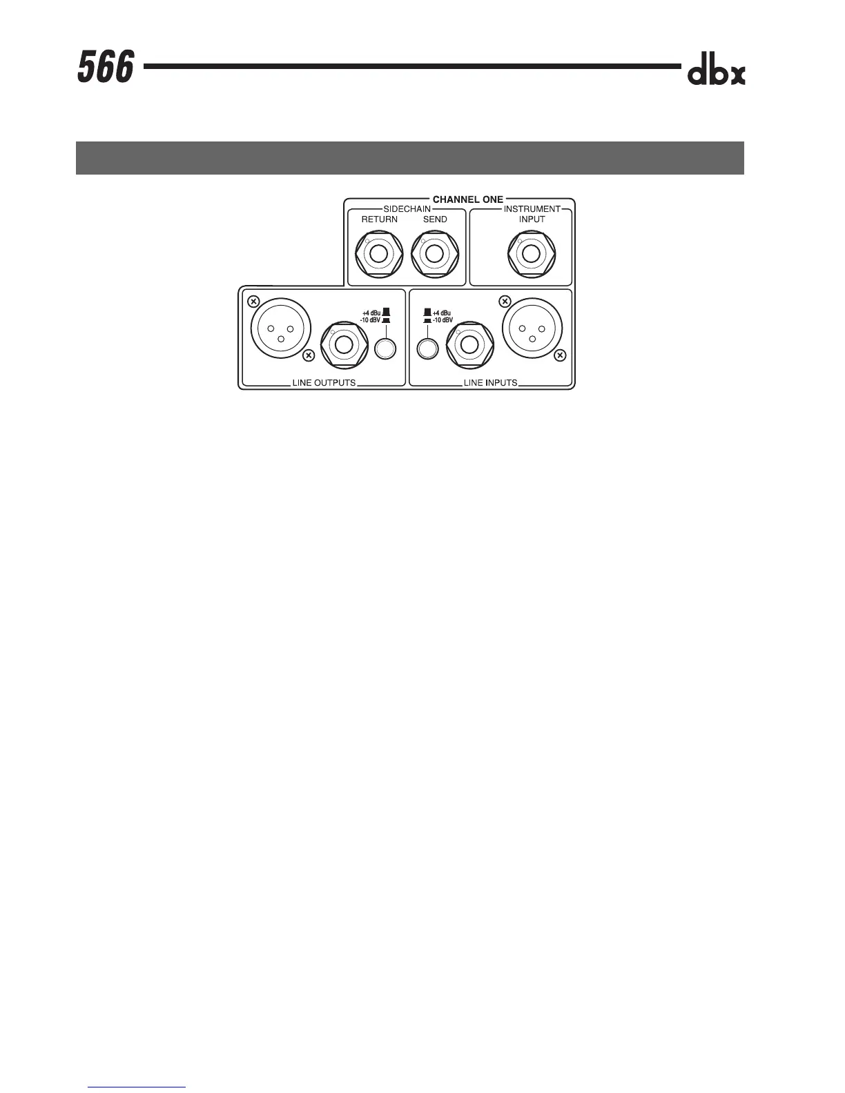 level devices to the 566. The nominal output level can be set to either +4 dBu or -10 dBV with the