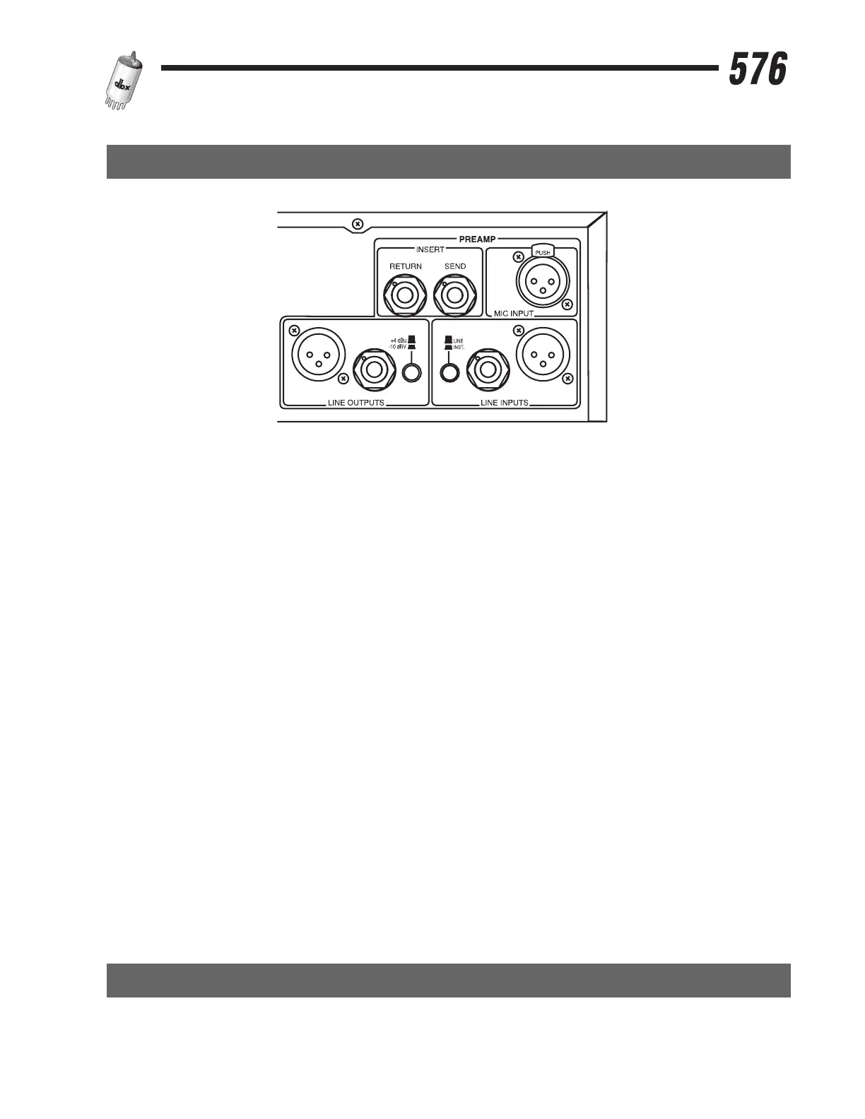 To connect instrument-level devices to the 576, use either the 1/4Ó or XLR Line Input connector and