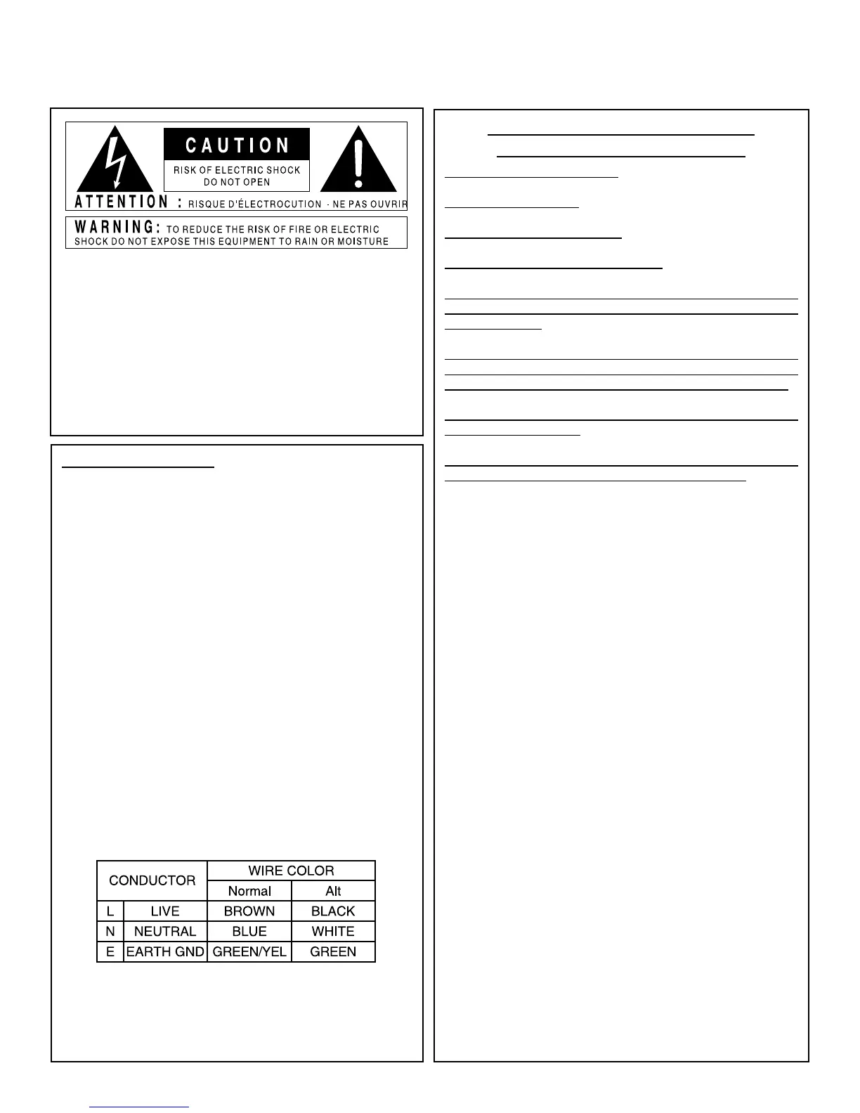 sonnel who should refer to the table below. The green/yellow wire shall be