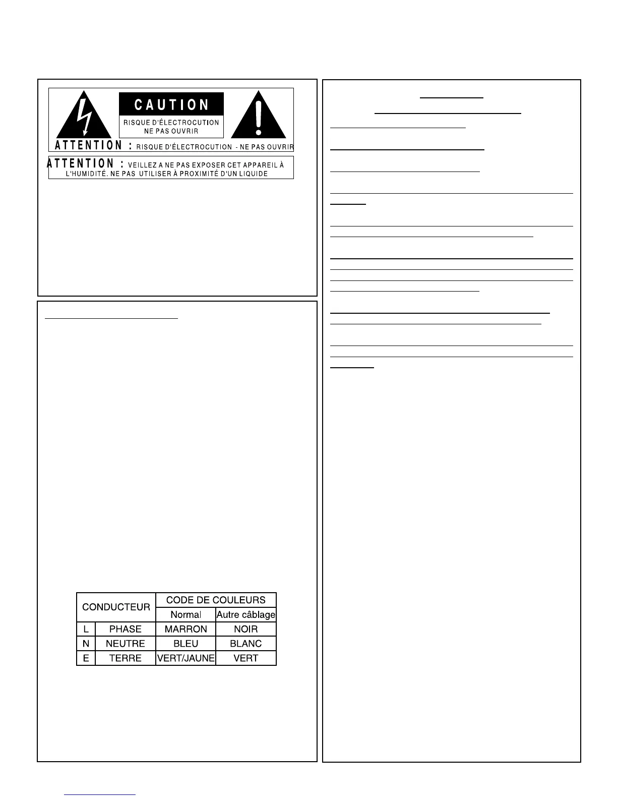 consultez un personnel qualifié (code des couleurs indiqué dans le