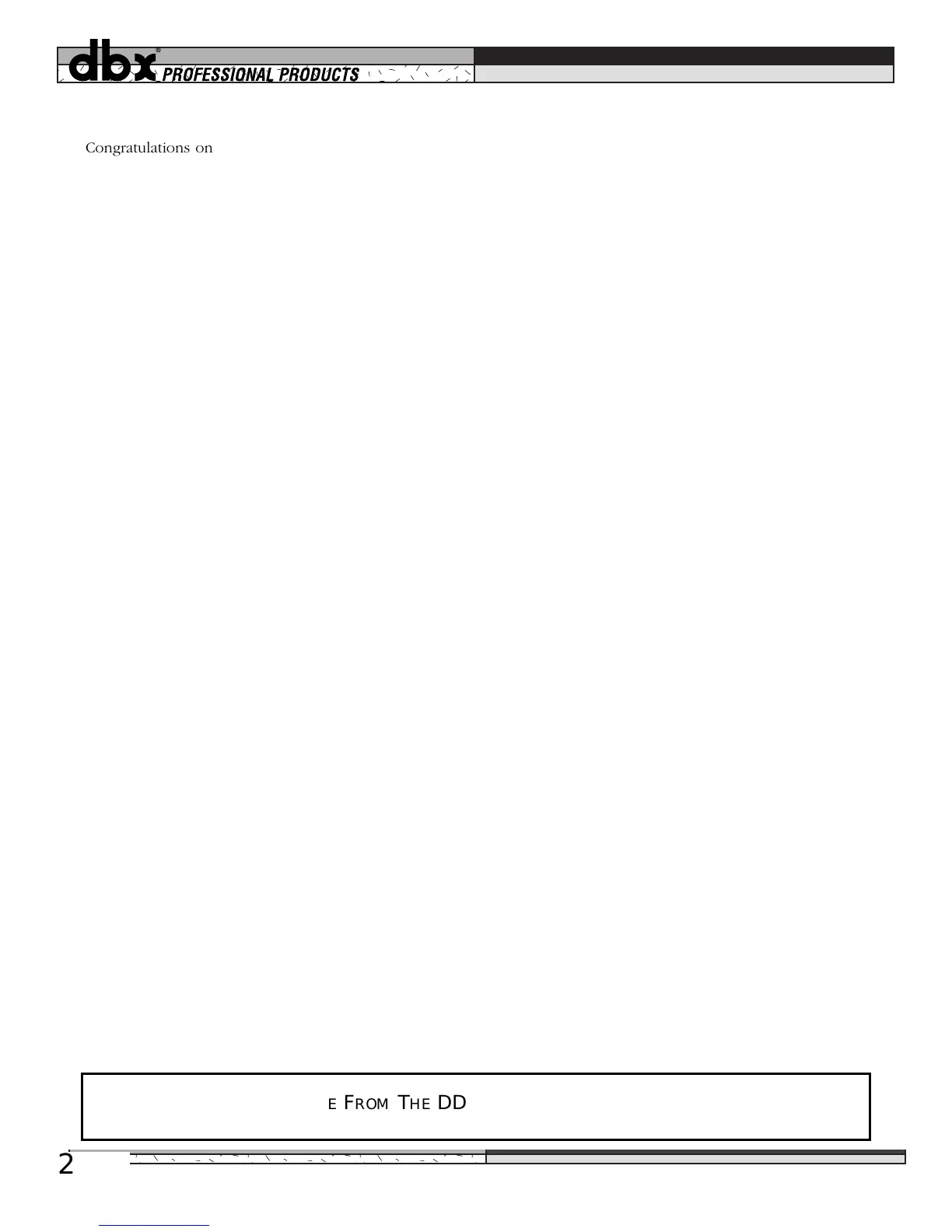 Congratulations on your purchase of the dbx DDP Digital Dynamics Processor. For over 25 years dbx has been