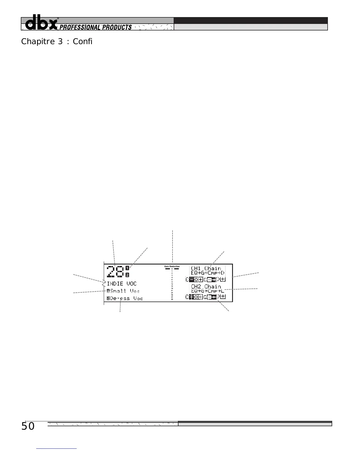 troisième ligne de texte. Lorsque vous appuyez sur la touche CH1 ou CH2, la LED de la touche