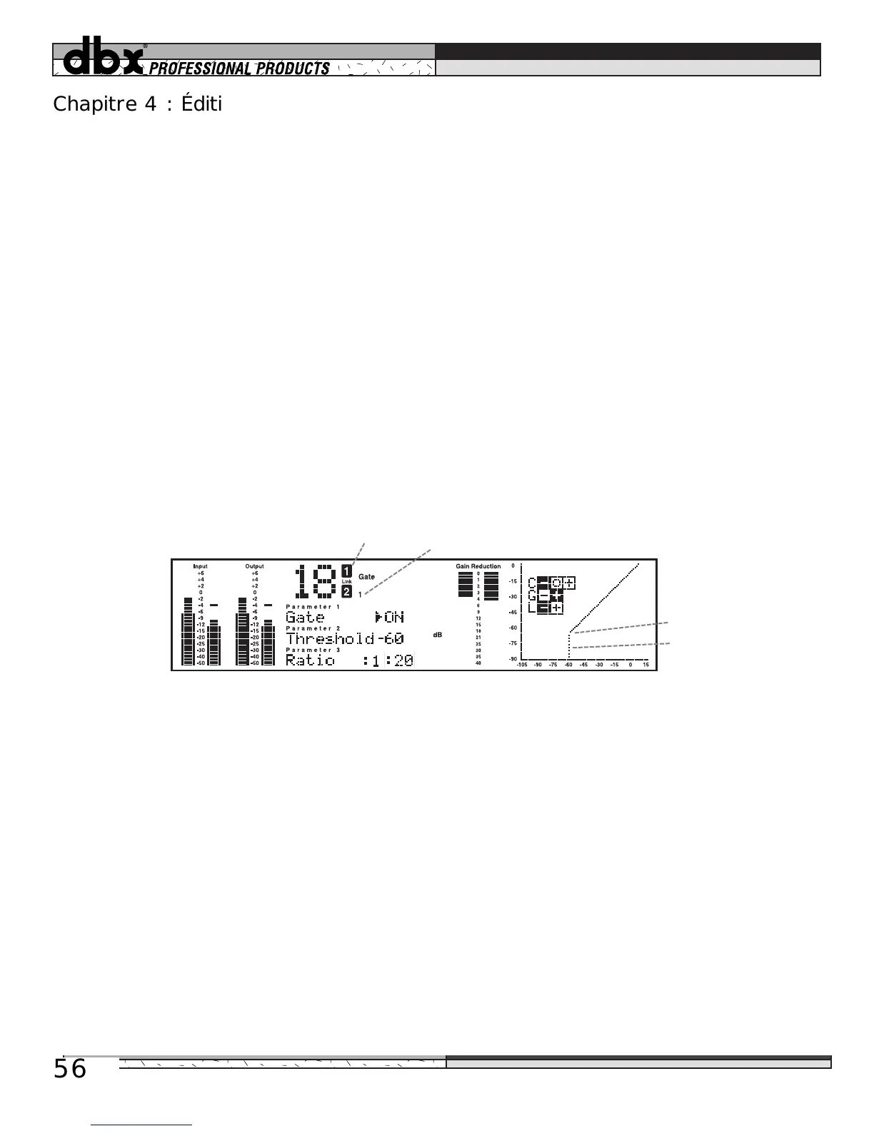 Seuil : (de -75 dB à 0 dB) La plage du seuil s’étend de -75 dB à 0 dB. Lorsque le seuil est réglé à environ