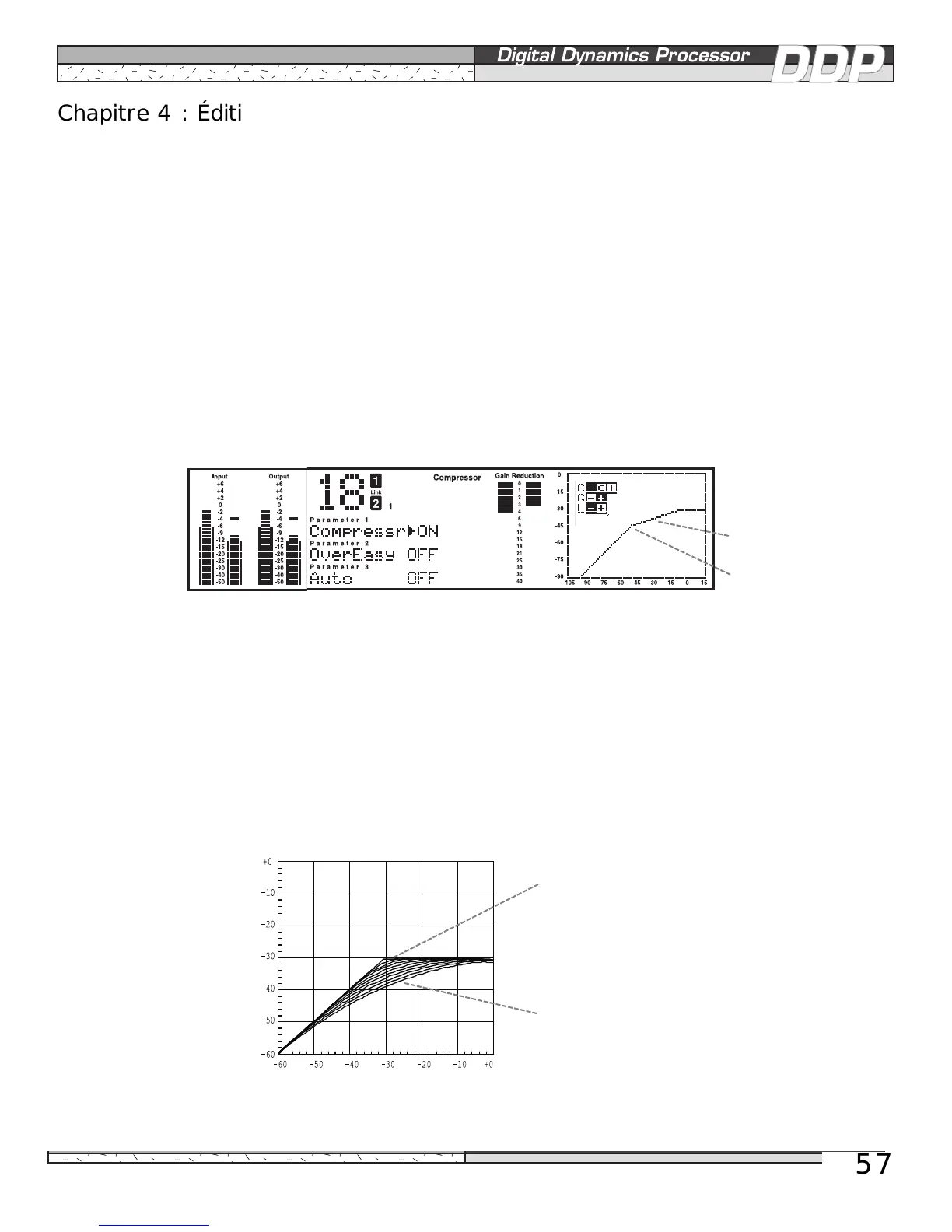 des courbes affiche le seuil de compression, ainsi que le taux et les niveaux de gain.