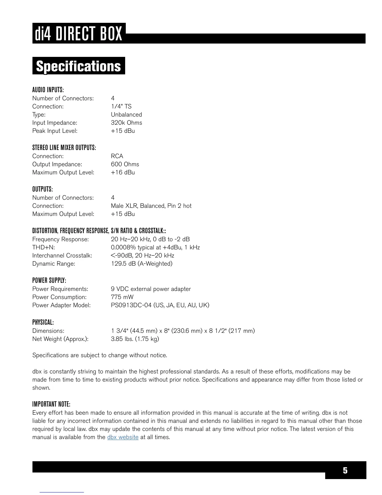 Every effort has been made to ensure all information provided in this manual is accurate at the time of writing. dbx is not