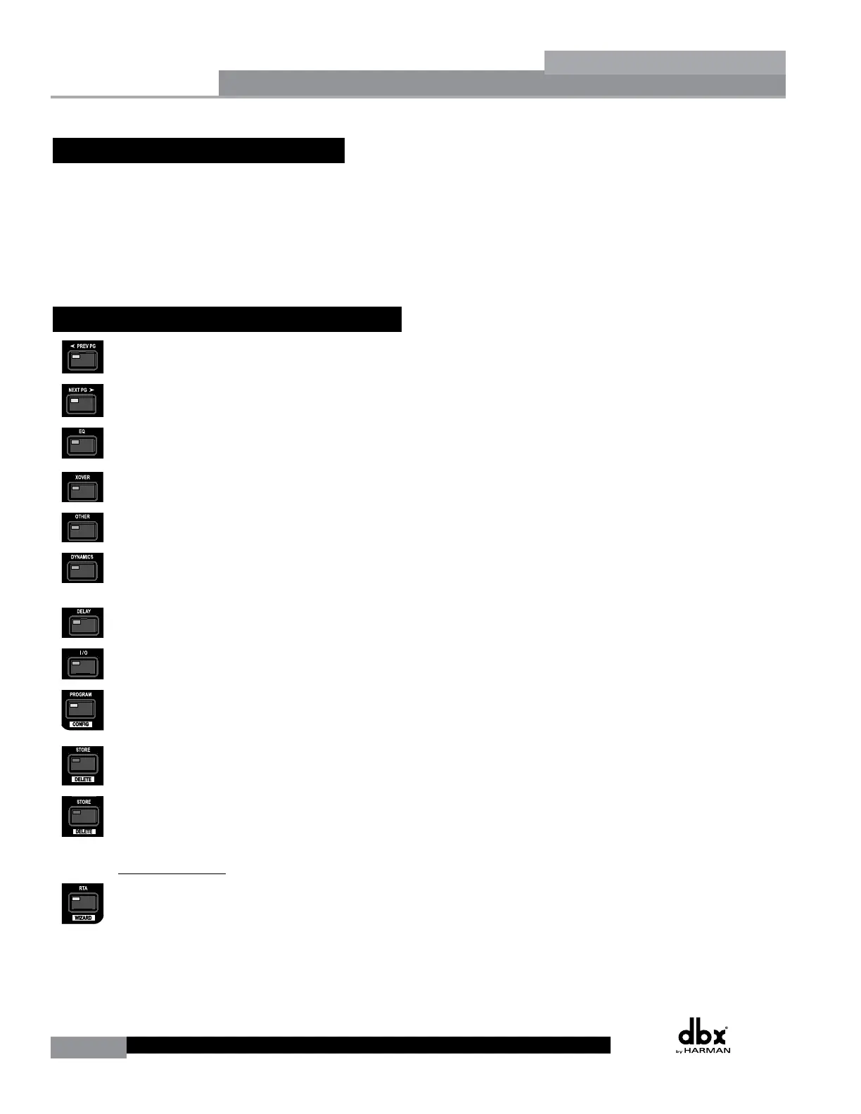 Navigational aspects of the DriveRack 260 are simple and as follows. 1. FX buttons - This array