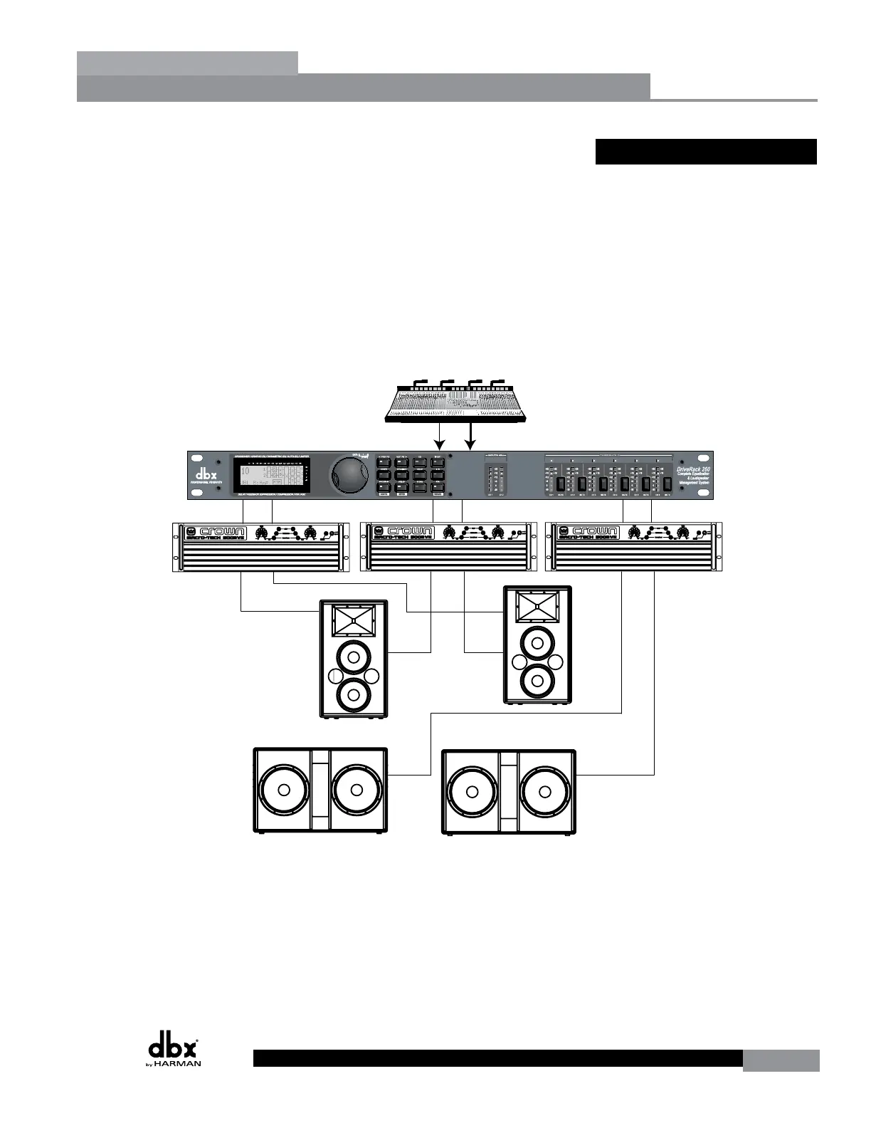 2. Connect the outputs of the DriveRack and run to the selected speaker amplifier.
