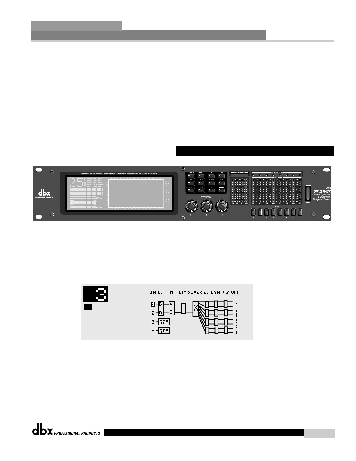 information of the DriveRack™ including: signal routing, configuration modes, effect block edit-