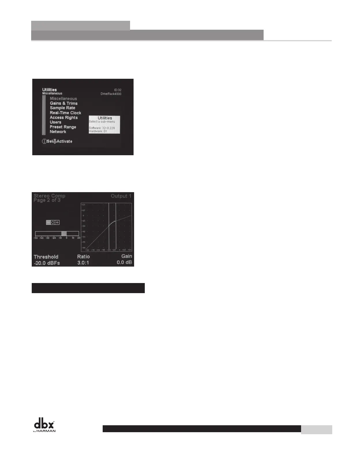 these menus. The DriveRack 4800 defaults to this screen and mode upon startup, and returns to this mode