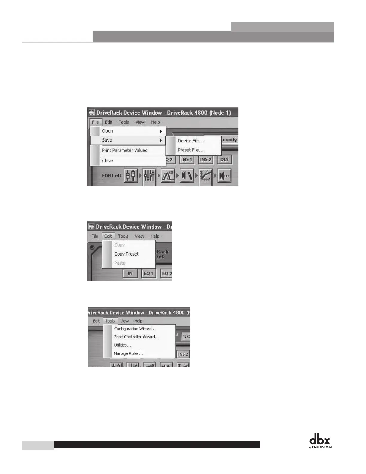 and Manage Roles. The Configuration Wizard is central in the operation of the DriveRack 4800 because