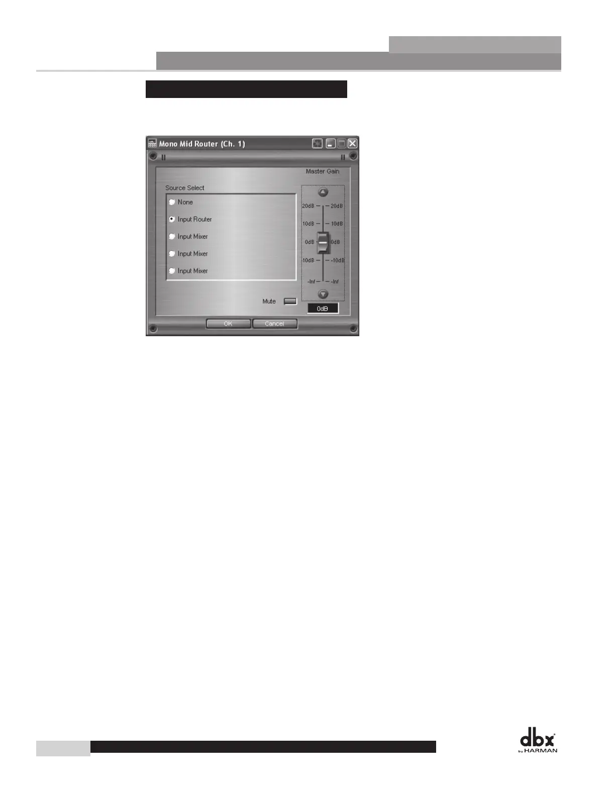 The Output Router lets you select from any of the input channels, adjust the Master Gain and Mute the