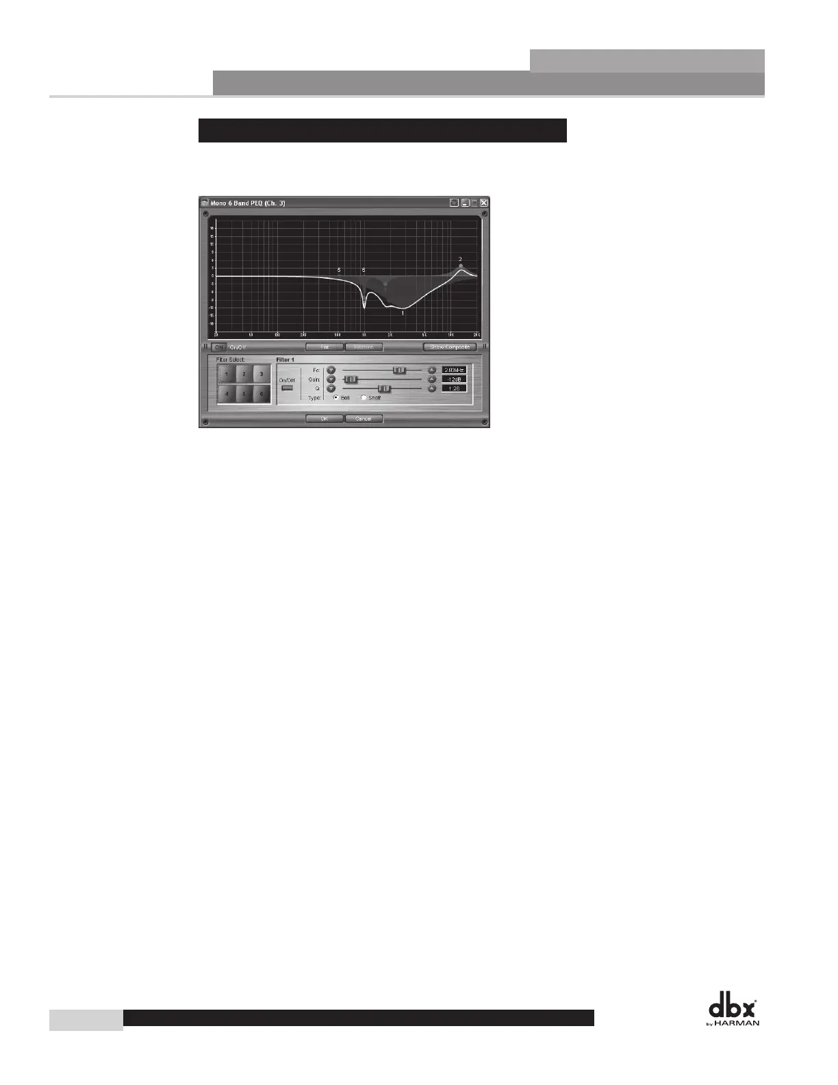6-Band Parametric EQ provides Frequency, Gain and Q control for each of the 6 EQ bands.