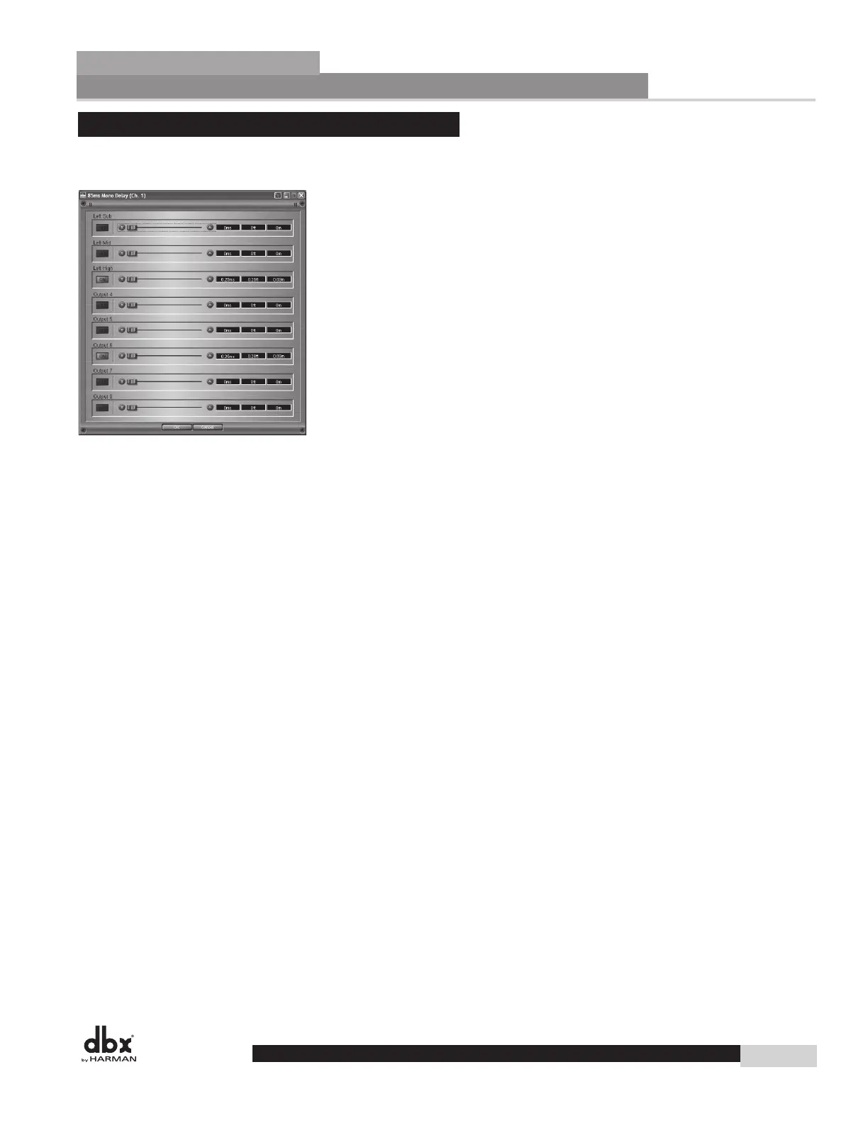 The output channels of the DriveRack 4800 and 4820 provide up to 1360 mSec of configurable Delay,