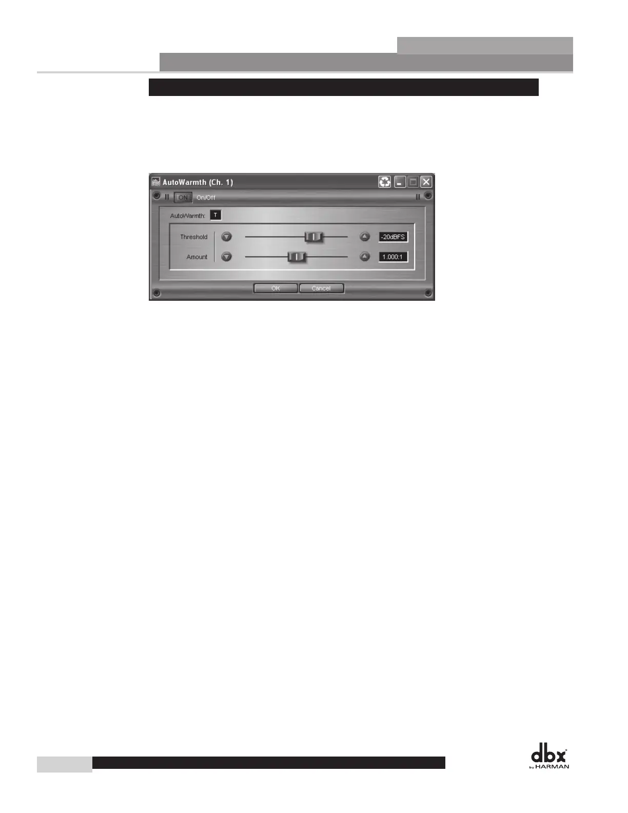 AutoWarmth is active. The Threshold range is between -60 and 0 dBFS. To set the Threshold, turn