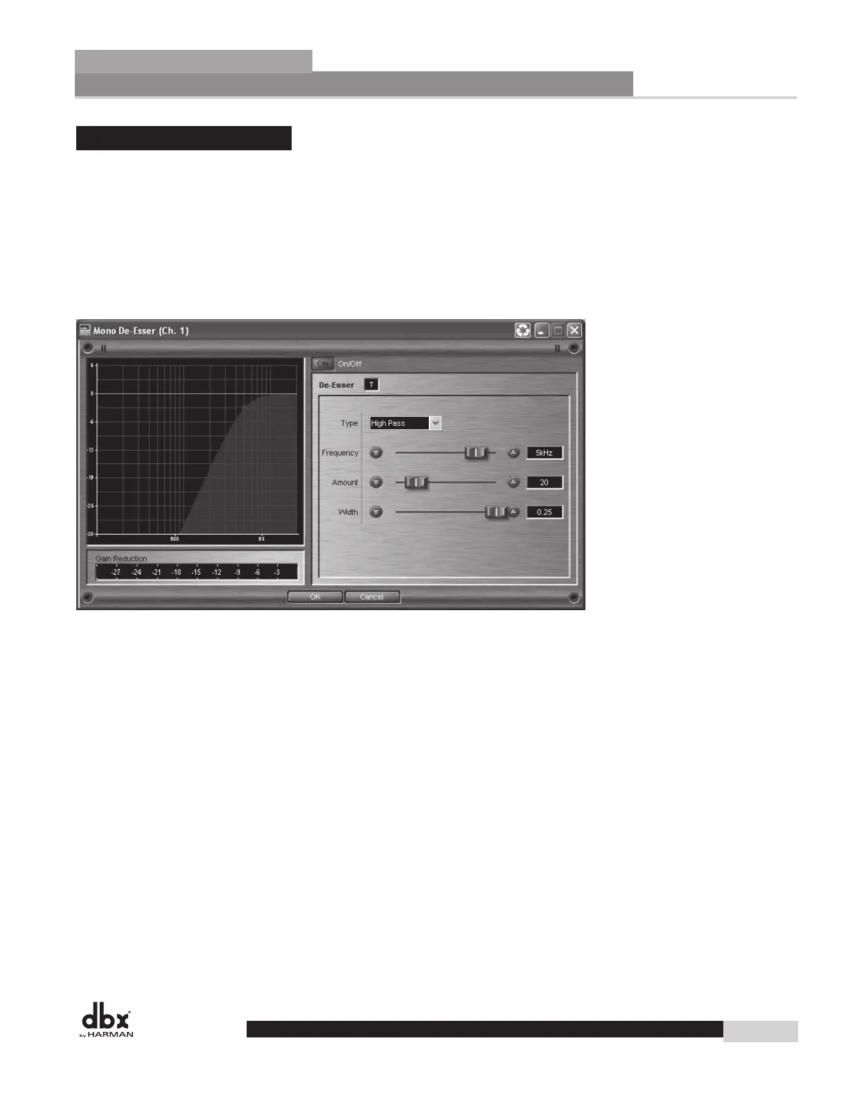 passing through it. This De-Esser offers two modes: Highpass and Bandpass. Highpass mode functions