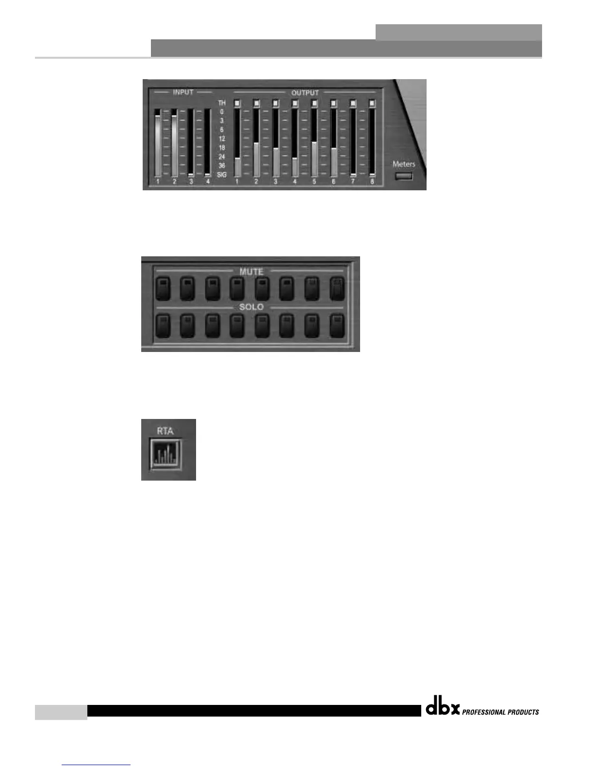 Meters. Mutes provide a quick way of muting DriveRack 4800 outputs. The Solos employ the Mutes for