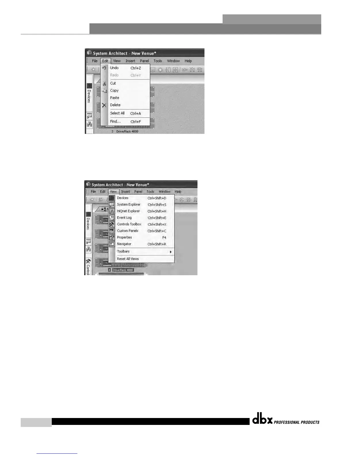 Paste and Delete selected units in the Venue. The Find… command lets you find a specific unit in the sys-