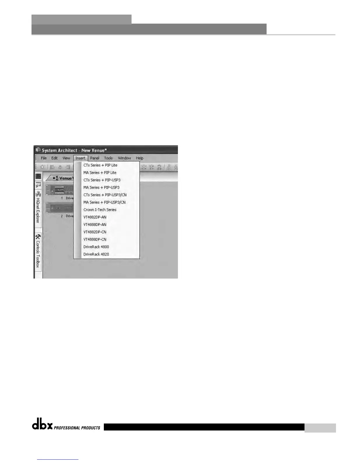 The Insert Menu provides the ability to insert devices into a venue.