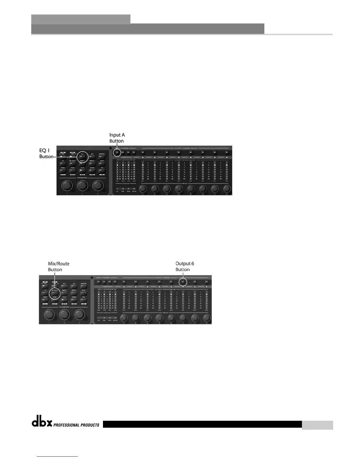 8. Press the OUTPUT CHANNEL 6 button and the MIX/ROUTE button to move to the Output Mixer
