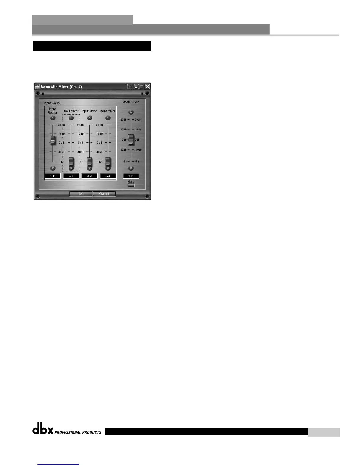 mix between signals coming from the input DSP channels. Master Gain and Muting of this Mixer is also